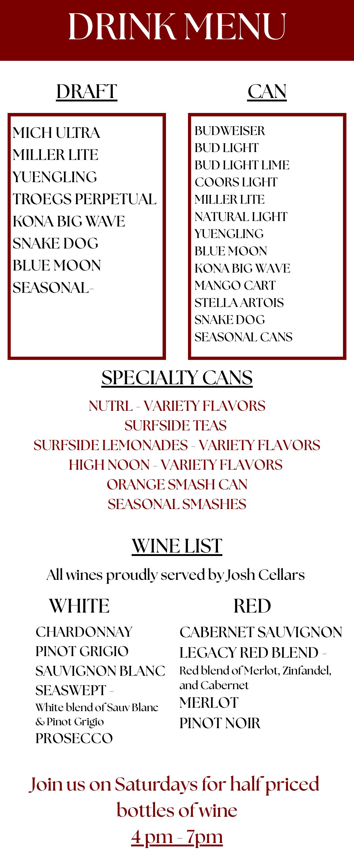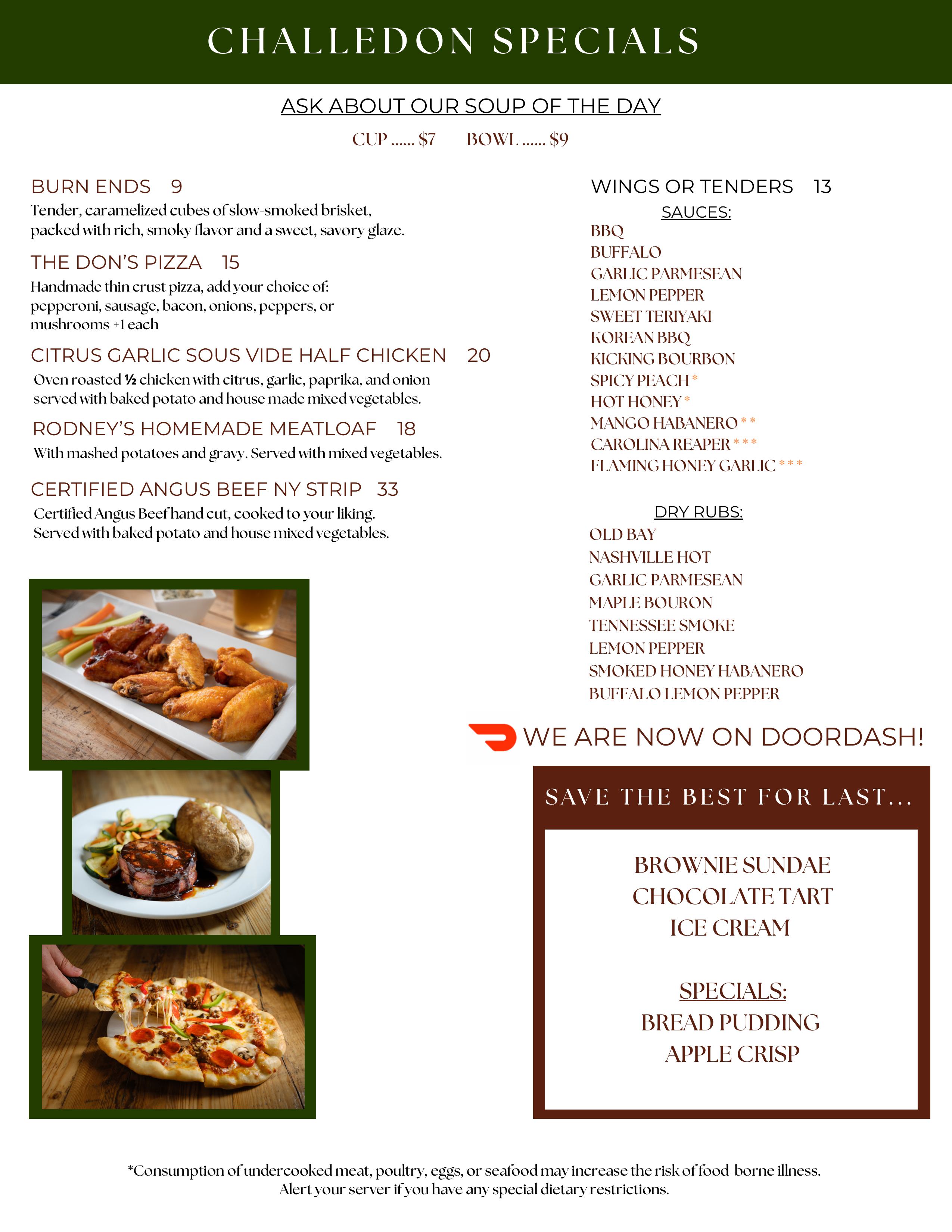 We offer weekly dinner specials on Thursday, Friday & Saturday Nights starting at 4pm