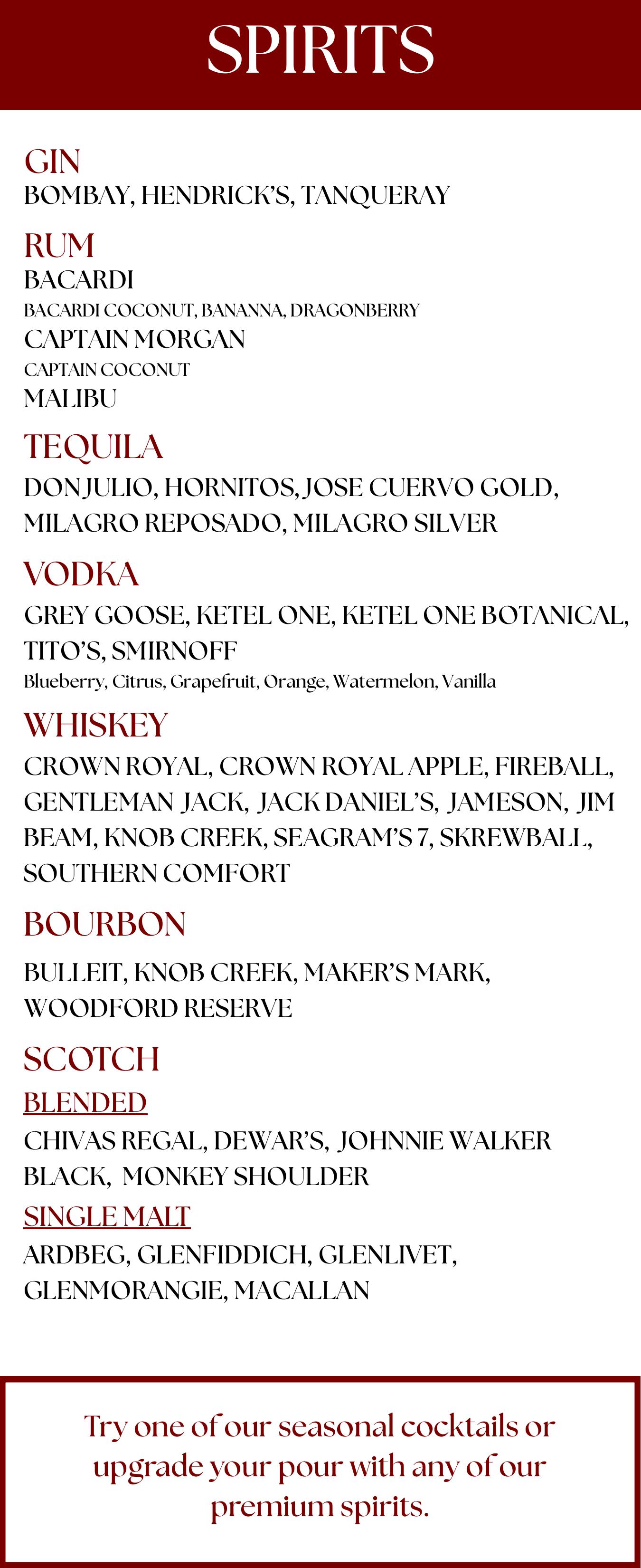 Wide selection of spirits