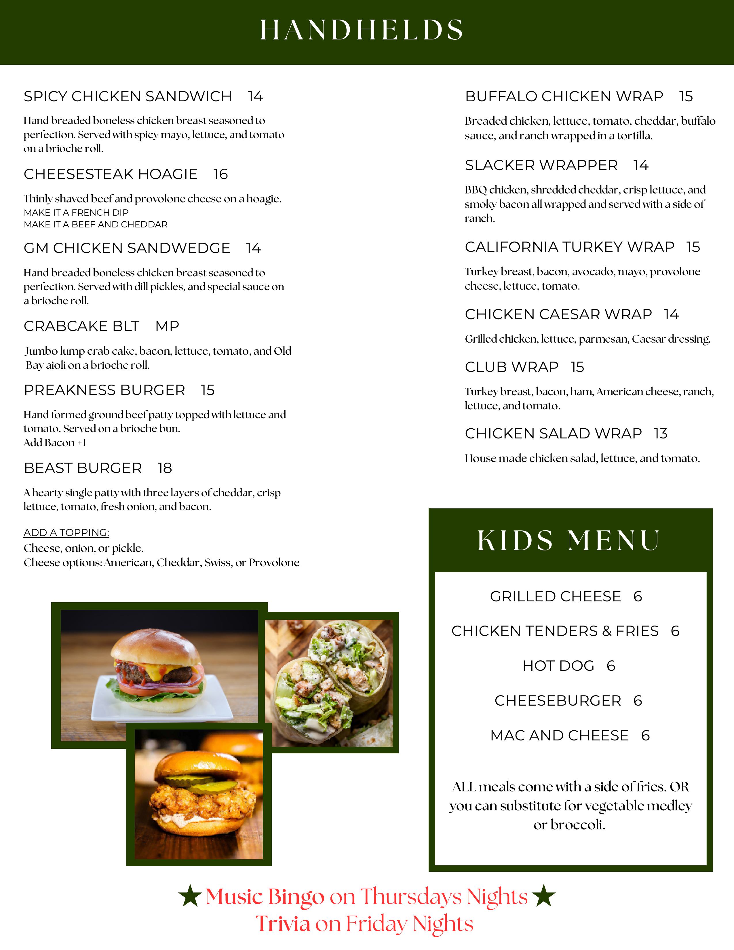 (bartender and small menu available during pro shop hours when grille is closed)